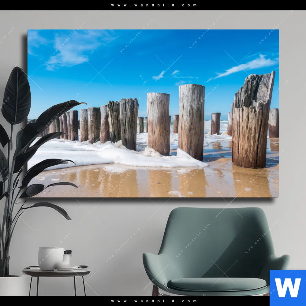 Leinwandbild | Buhnen in Wellen am Strand | Querformat