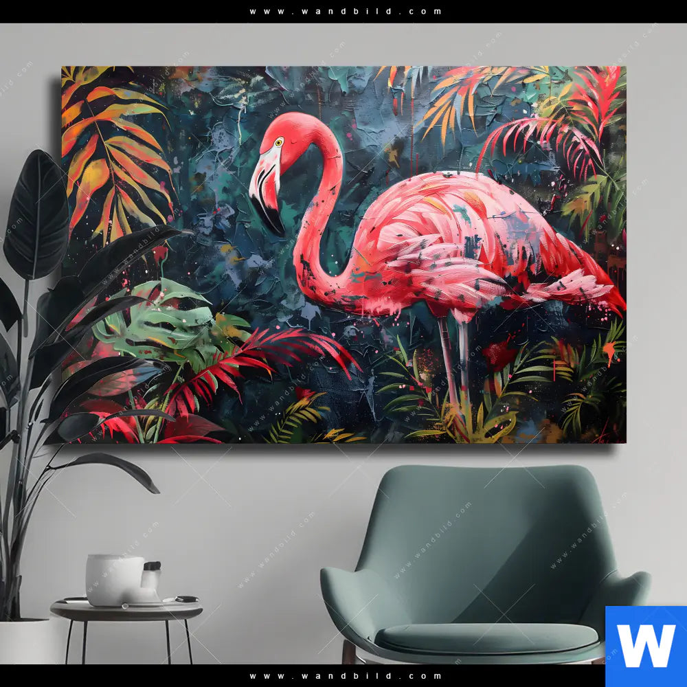 Leinwandbild | Flamingo - Dschungel Eleganz | Querformat