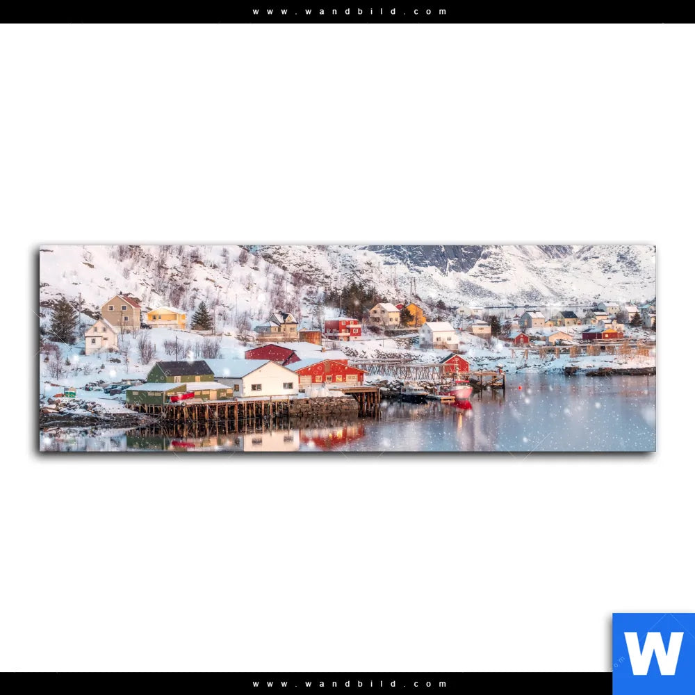 Leinwandbild | Skandinavisches Dorf im Schnee | Panorama