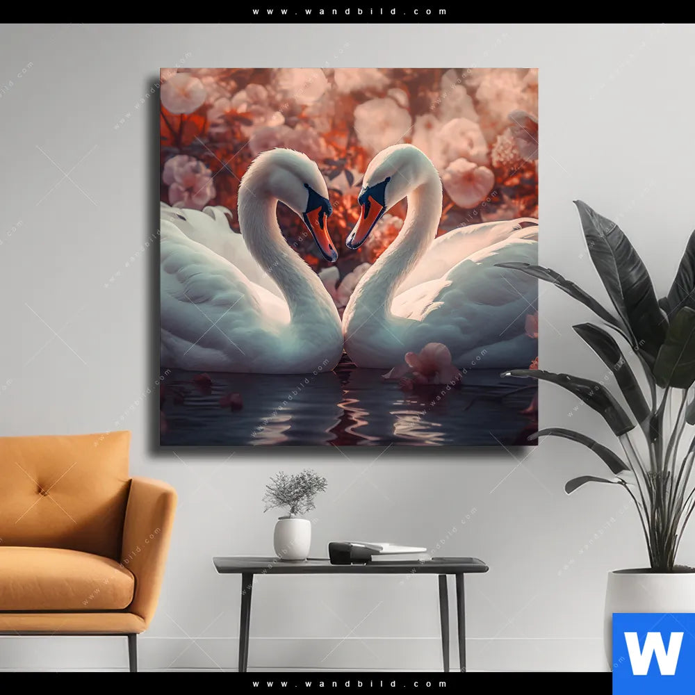 Leinwandbild | Zwei Schwäne im Wasser | Quadrat