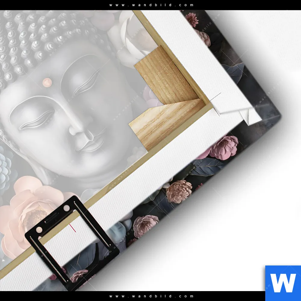 Buddha - Feng Shui, Blumen - Botanik Fotoleinwand aufgespannt auf Holz-Keilrahmen