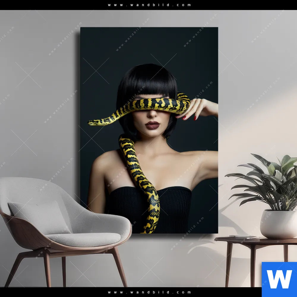 Leinwandbild | Frau mit gelber Schlange | Hochformat