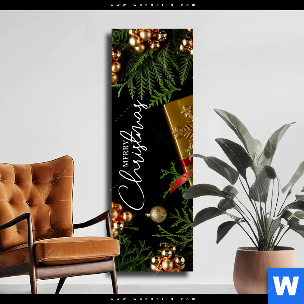 Leinwandbild | Goldene Weihnachtsgrüße | Schmal