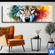Leinwandbild | Wolf mit bunten Farbspritzern No. 2 | Schmal