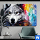 Leinwandbild | Wolf mit bunten Farbspritzern | Schmal