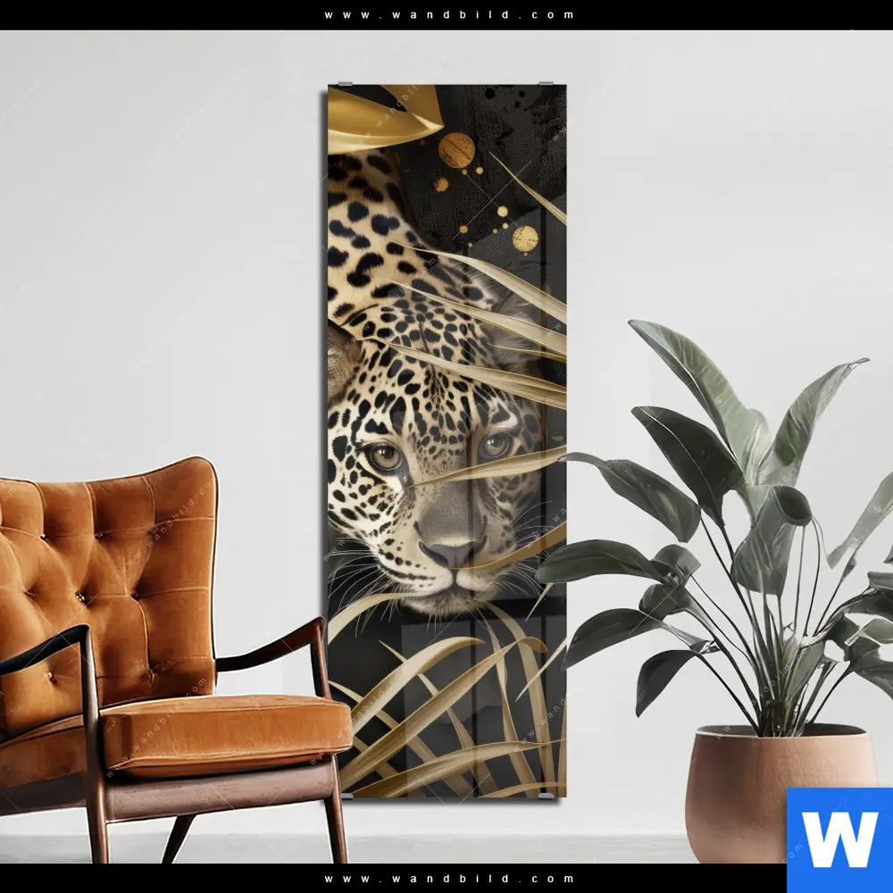 Acrylglasbild | Leopard in goldener Tarnung | Schmal