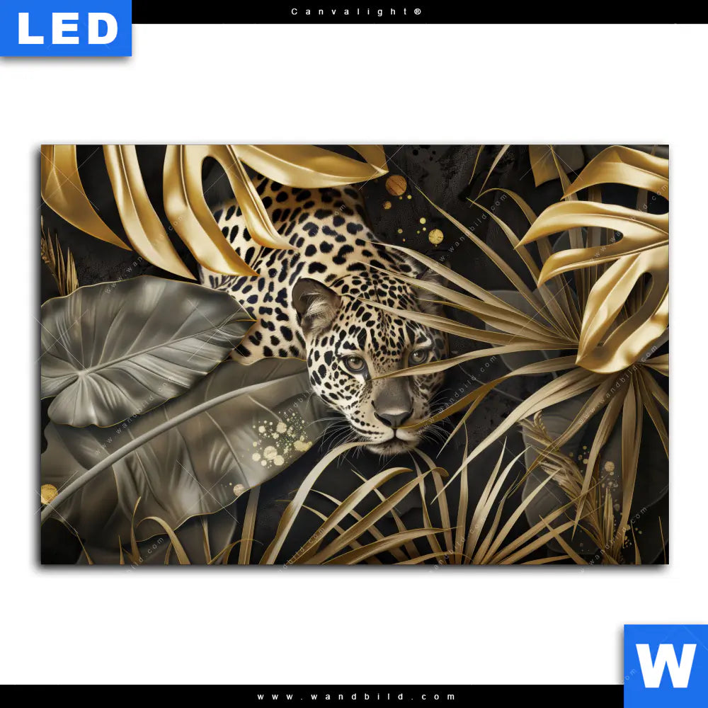 Canvalight® Leuchtbild | Leopard in goldener Tarnung | Querformat