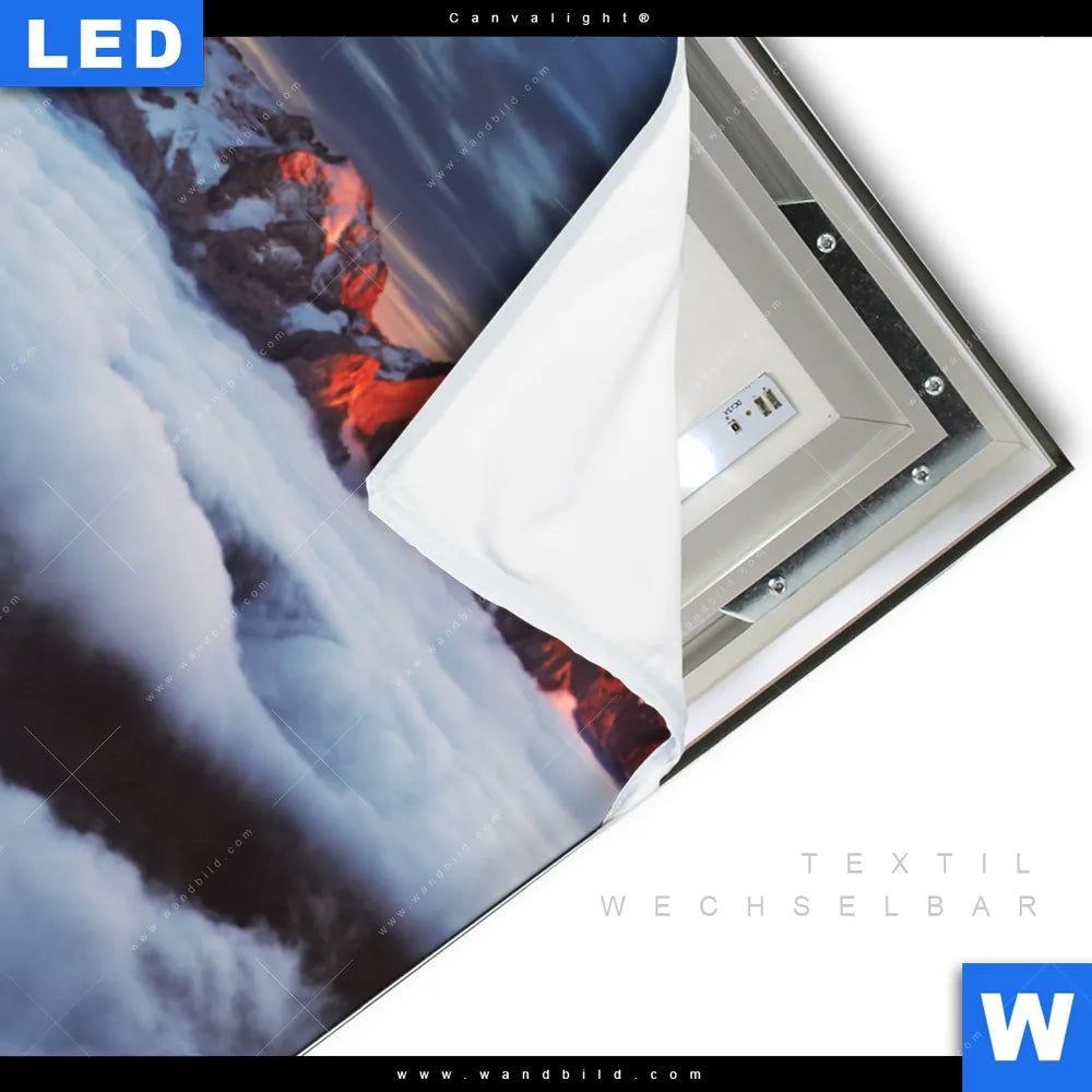 LED-Textilrahmen-Bild mit austauschbarem Landschaften Textil-Druck (Wechselbild)