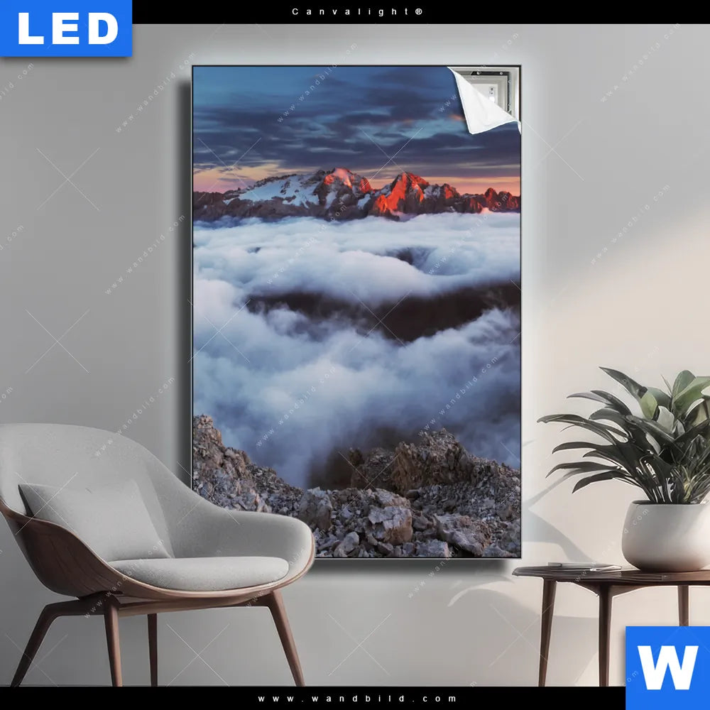 Canvalight® Leuchtbild | Alpen im Nebel | Hochformat