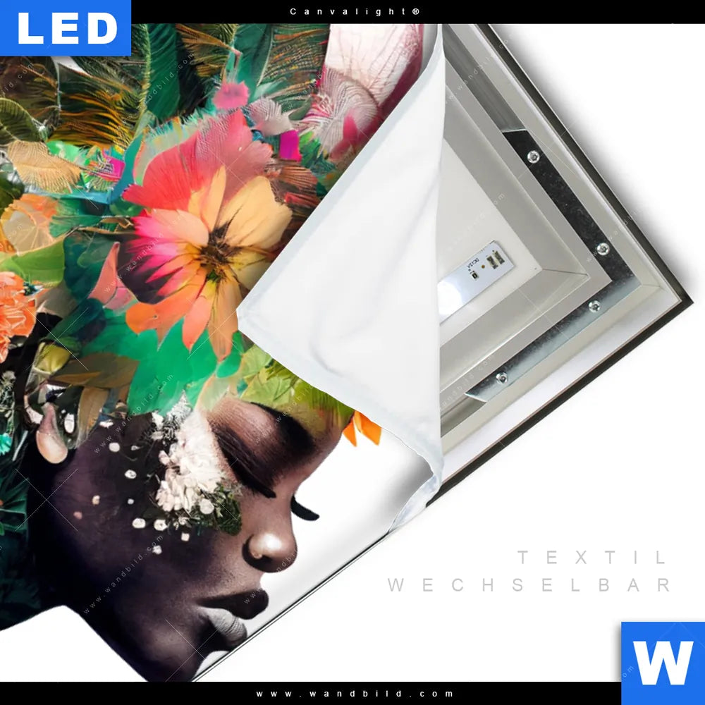 LED-Textilrahmen-Bild mit austauschbarem Porträts - Menschen, Blumen - Botanik Textil-Druck (Wechselbild)