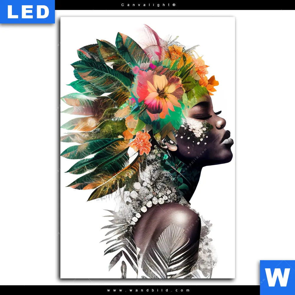 Canvalight® Leuchtbild | Doppelbelichtung Porträt einer afrikanischen Frau | Hochformat