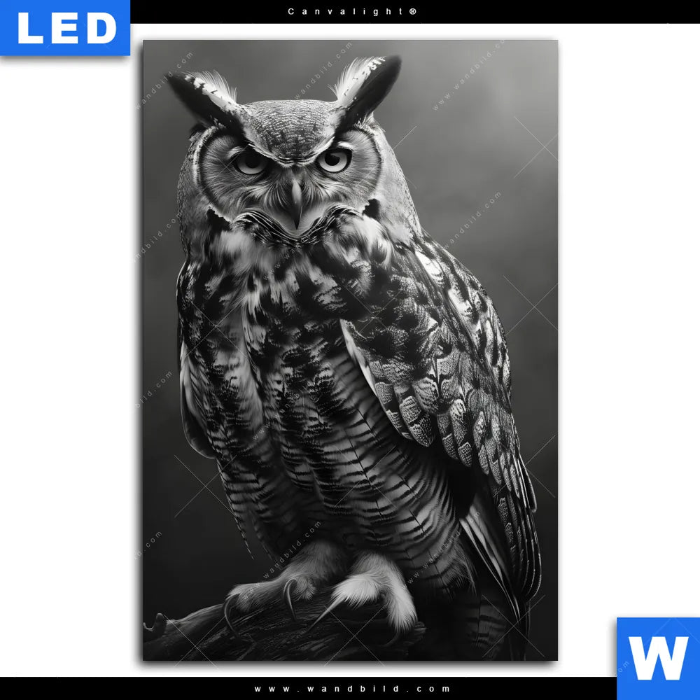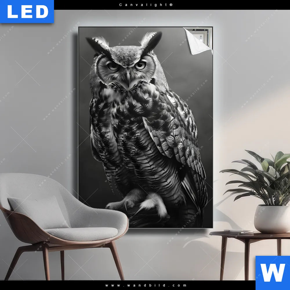 Canvalight® Leuchtbild | Düstere Eleganz der Eule | Hochformat