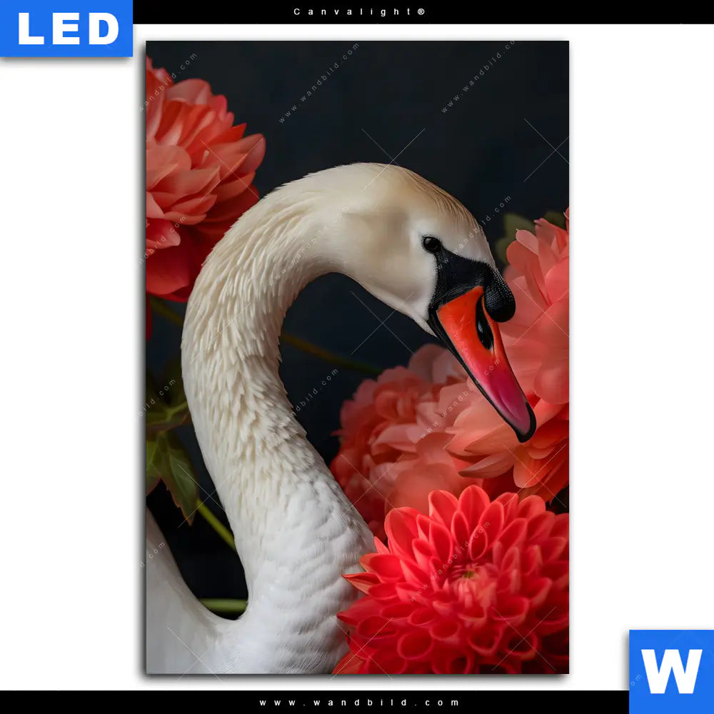 Canvalight® Leuchtbild | Eleganter Schwan mit Blumen | Hochformat