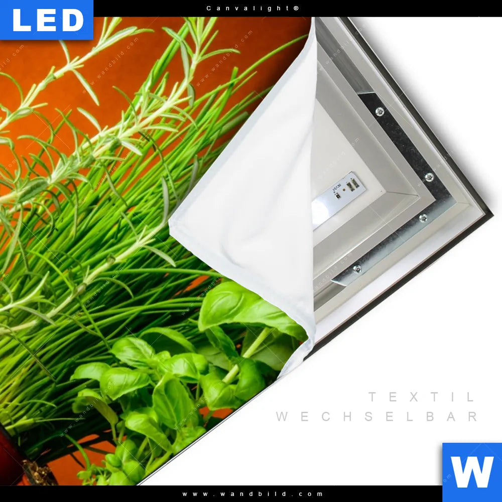 LED-Textilrahmen-Bild mit austauschbarem Essen - Trinken Textil-Druck (Wechselbild)