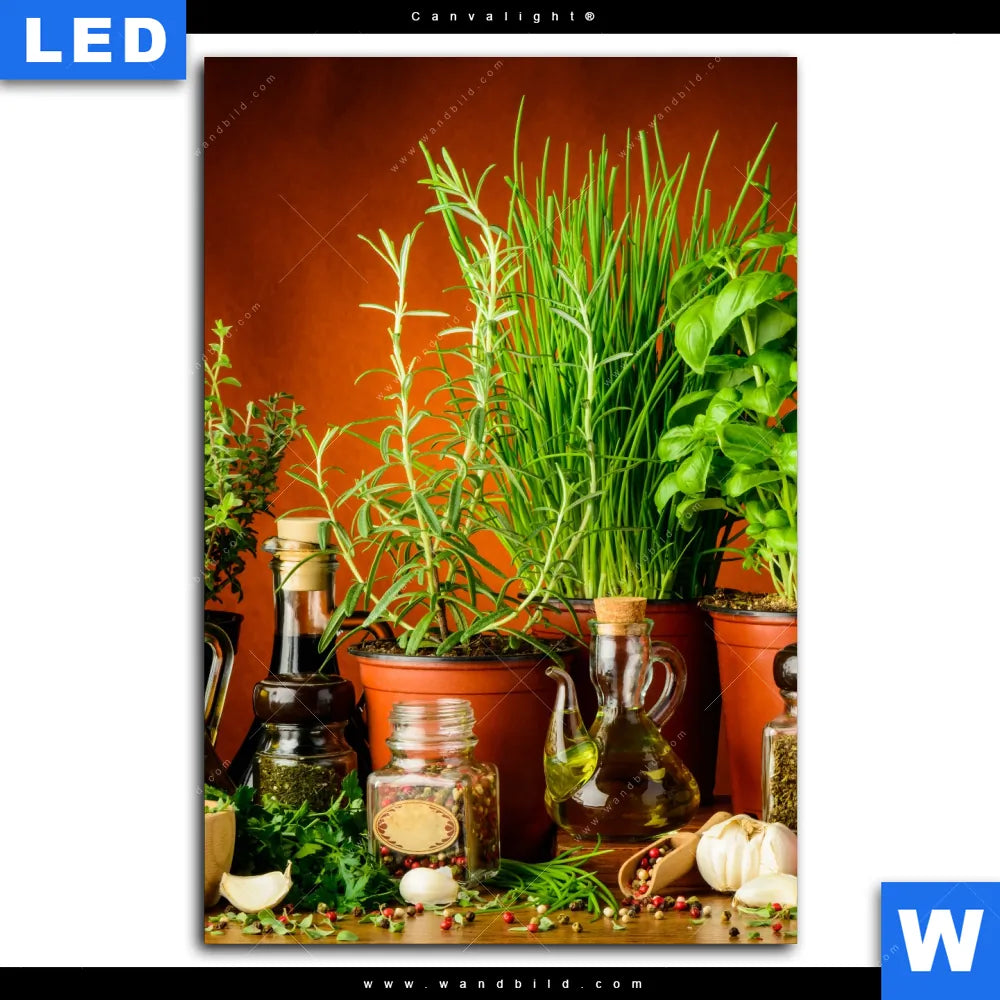 Canvalight® Leuchtbild | Stillleben mit mediterranen Kräutern | Hochformat