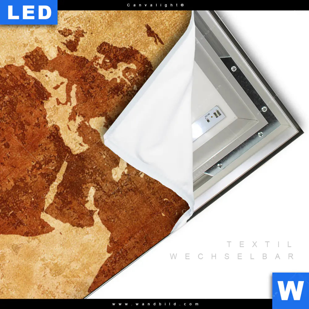 Canvalight® TEX Leuchtbild | Weltkarte Rostoptik | Hochformat