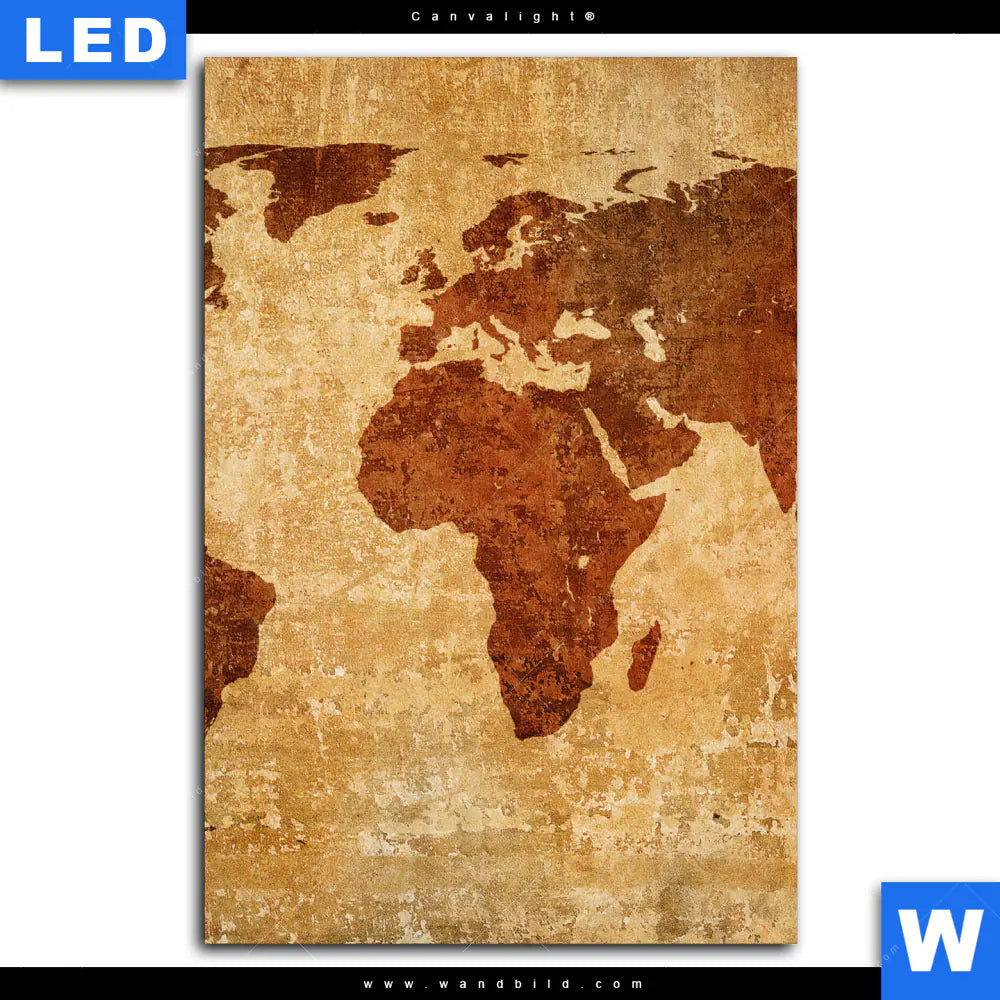 Canvalight® Leuchtbild | Weltkarte Rostoptik | Hochformat