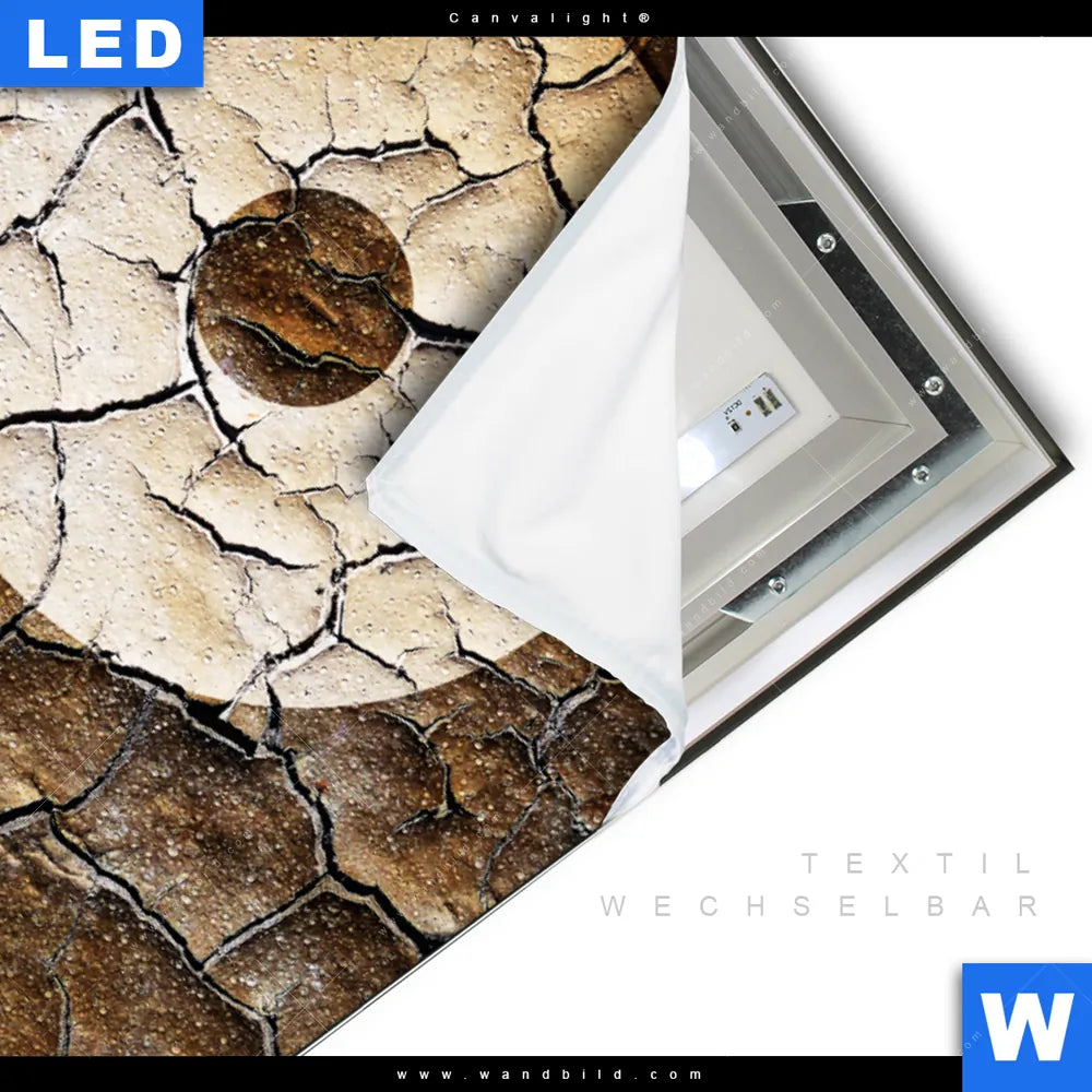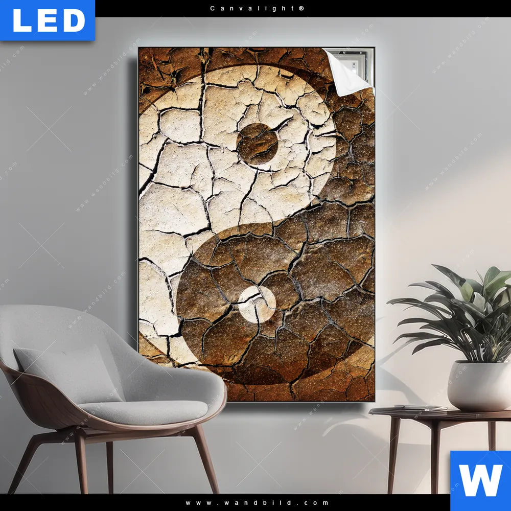 Canvalight® TEX Leuchtbild | Yin Yang auf rissiger Erde | Hochformat