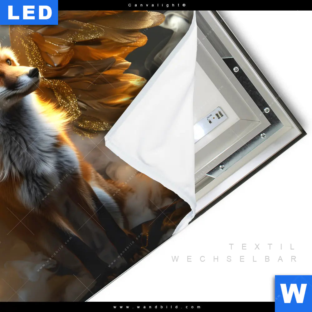 Canvalight® TEX Leuchtbild | Fuchs mit goldenen Flügeln | Quadrat