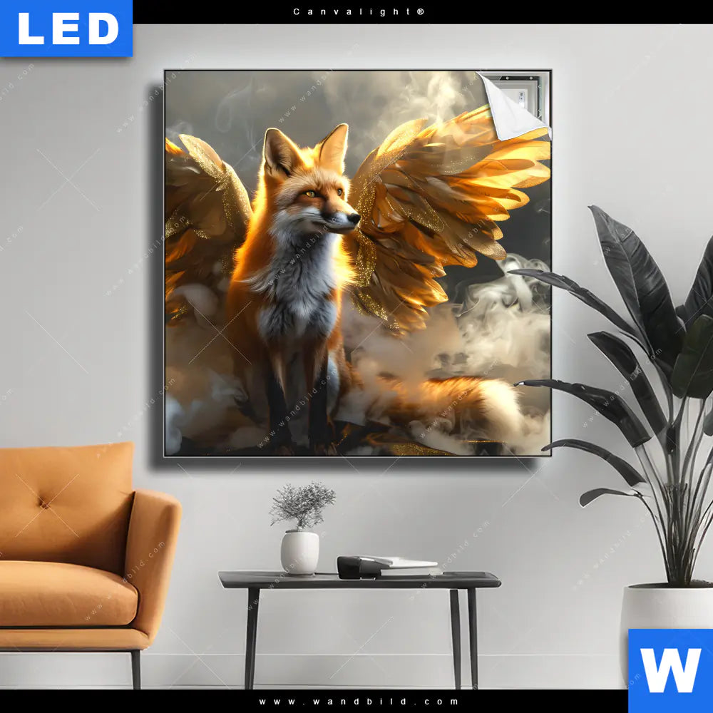 Canvalight® Leuchtbild | Fuchs mit goldenen Flügeln | Quadrat