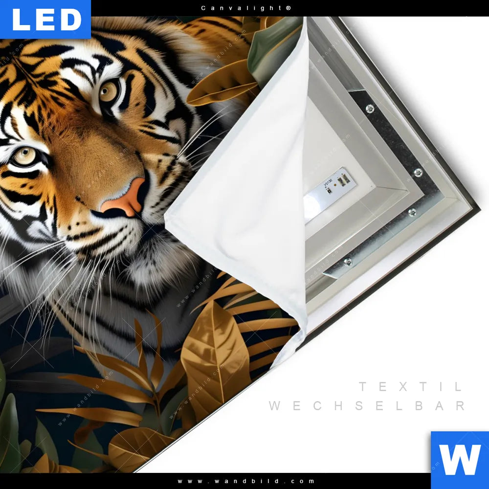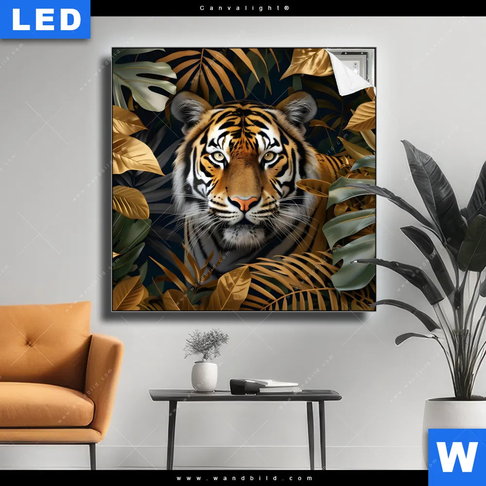 Canvalight® TEX Leuchtbild | Majestätischer Tiger im Dschungel | Quadrat