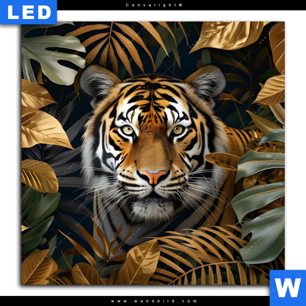 Canvalight® Leuchtbild | Majestätischer Tiger im Dschungel | Quadrat