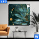 Canvalight® Leuchtbild | Schwarze und goldene Blüten | Quadrat