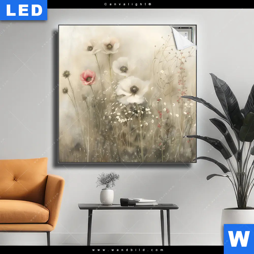 Canvalight® TEX Leuchtbild | Zarte Wildblumen in Pastelltönen | Quadrat