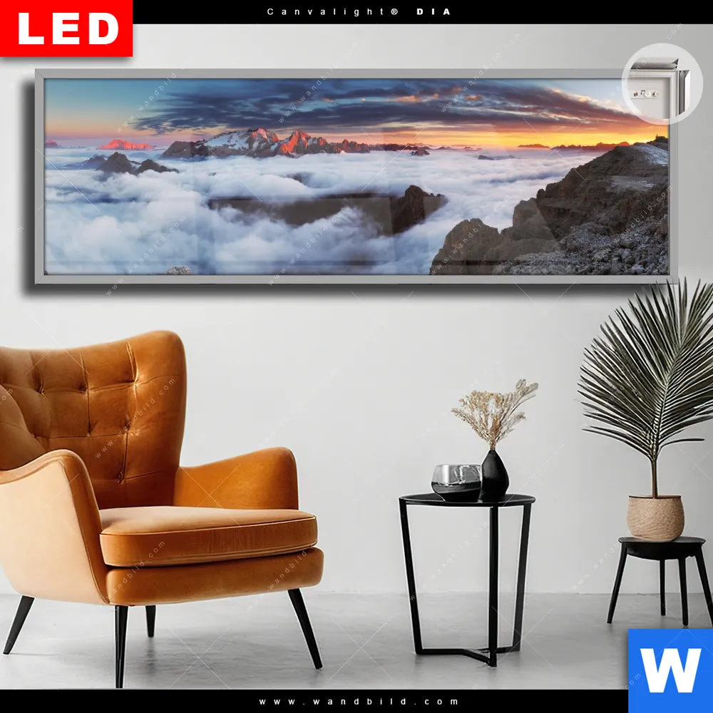 Canvalight® DIA Leuchtbild | Alpen im Nebel | Panorama