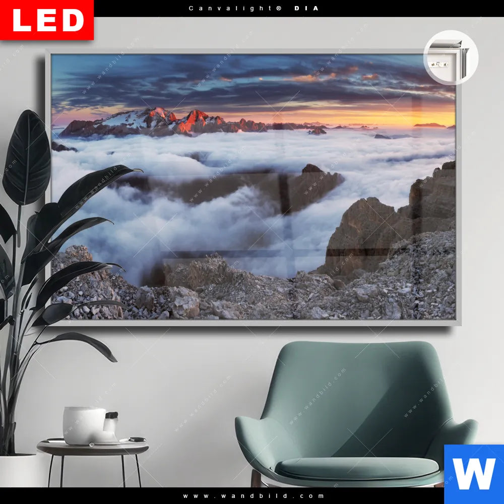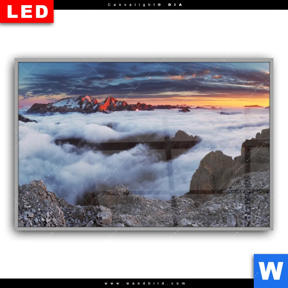 Canvalight® DIA Leuchtbild | Alpen im Nebel | Querformat