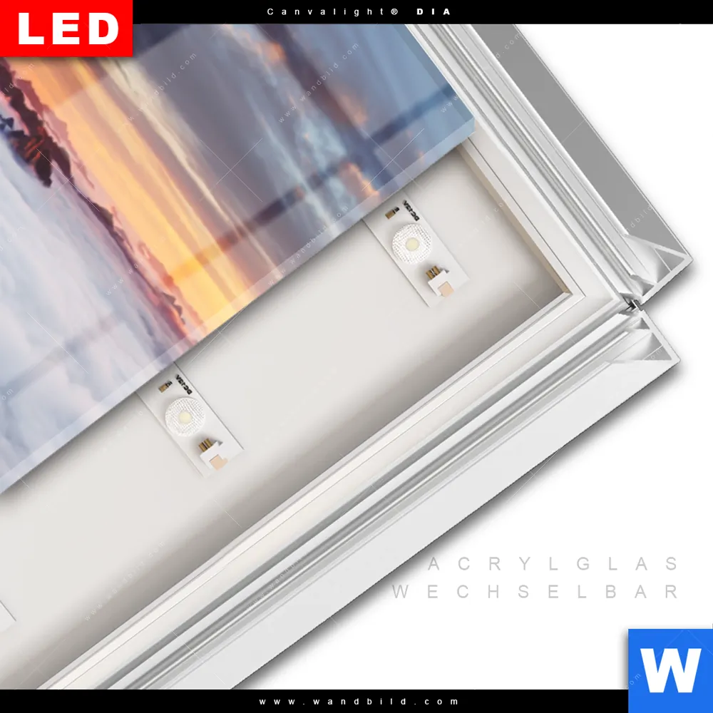 LED-Glasbild mit austauschbarem Acrylglas-Druck (Wechselbild)