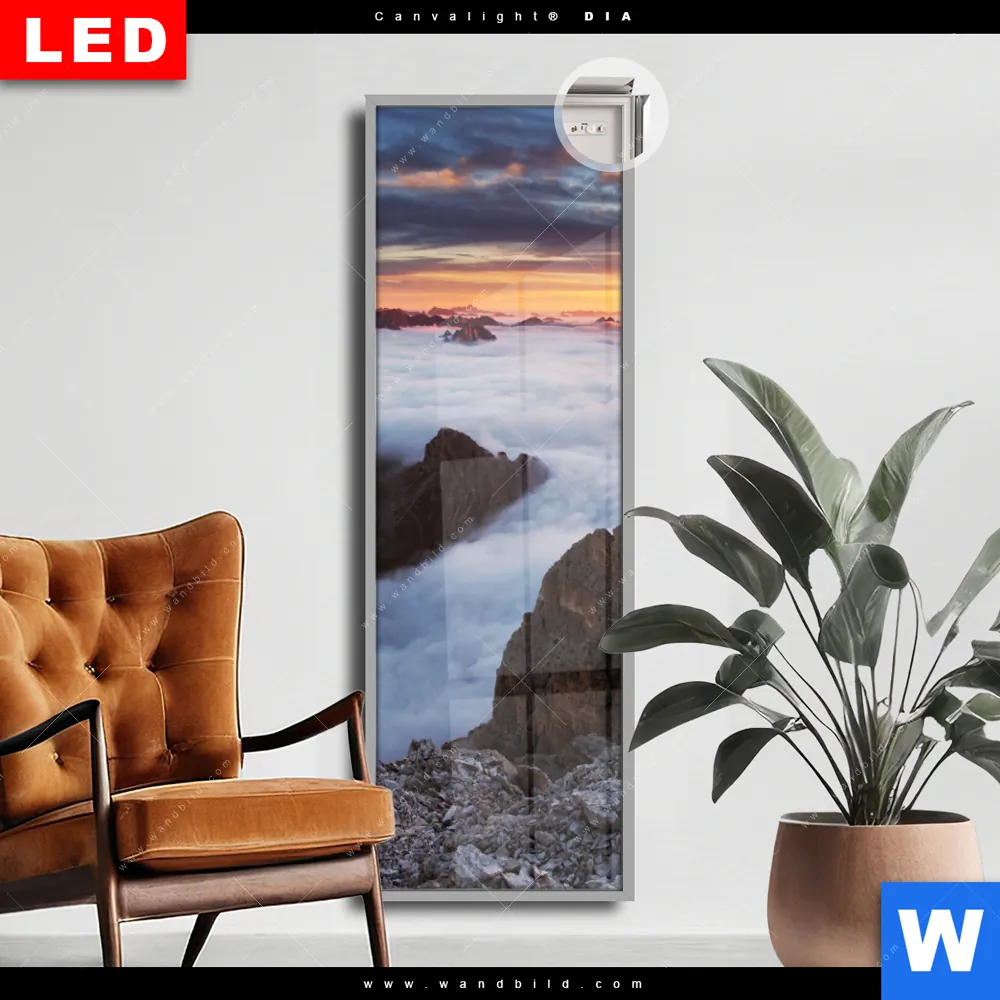 Canvalight® DIA Leuchtbild | Alpen im Nebel | Schmal