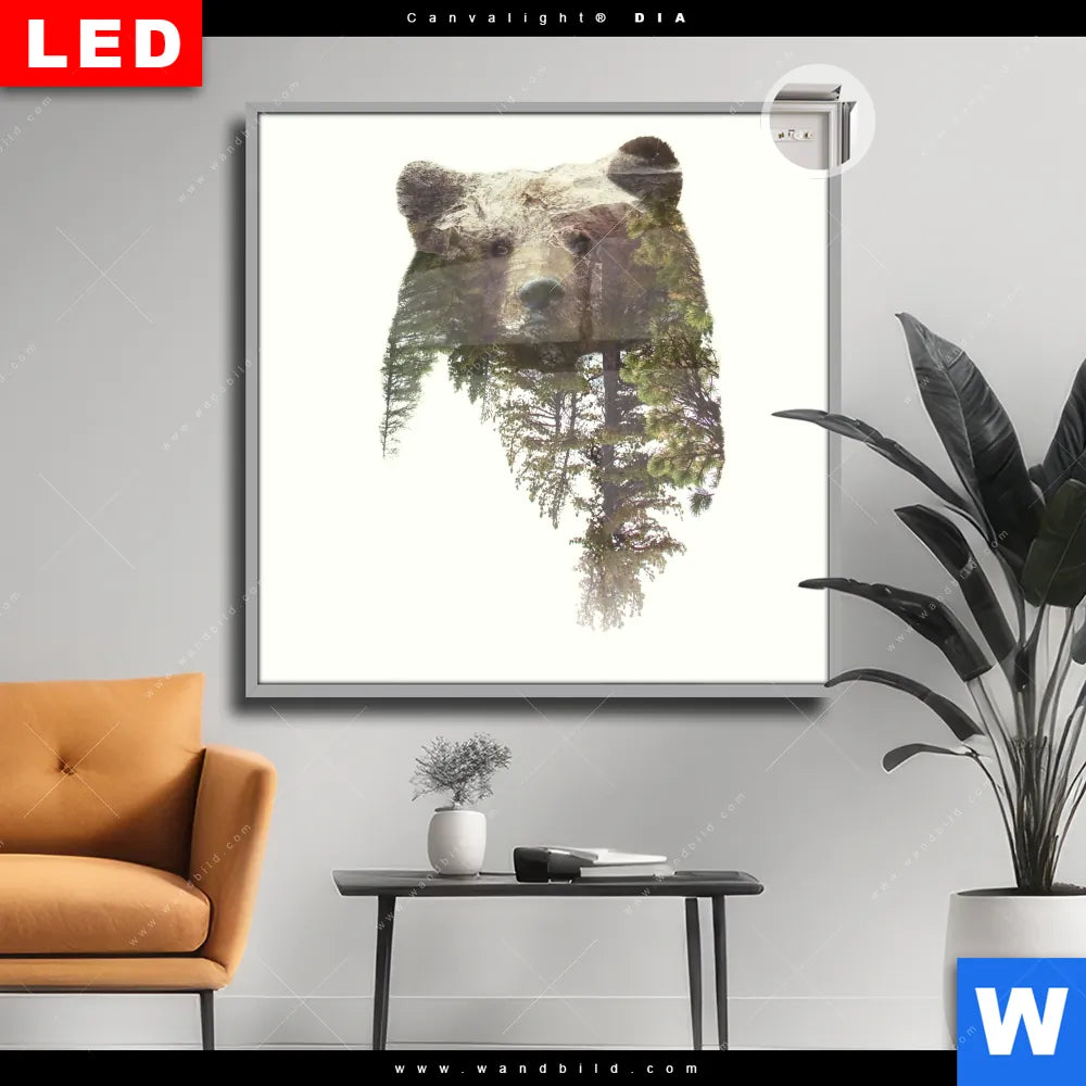 Canvalight® DIA Leuchtbild | Bär & Wald No.1 | Quadrat