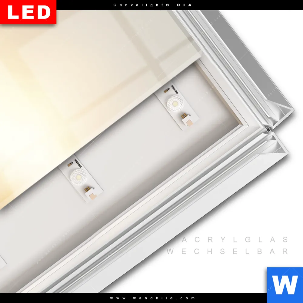 LED-Glasbild mit austauschbarem Acrylglas-Druck (Wechselbild)