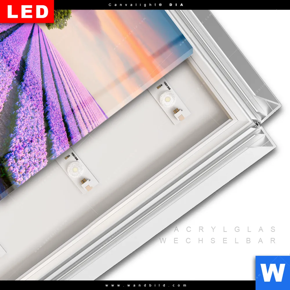 LED-Glasbild mit austauschbarem Acrylglas-Druck (Wechselbild)