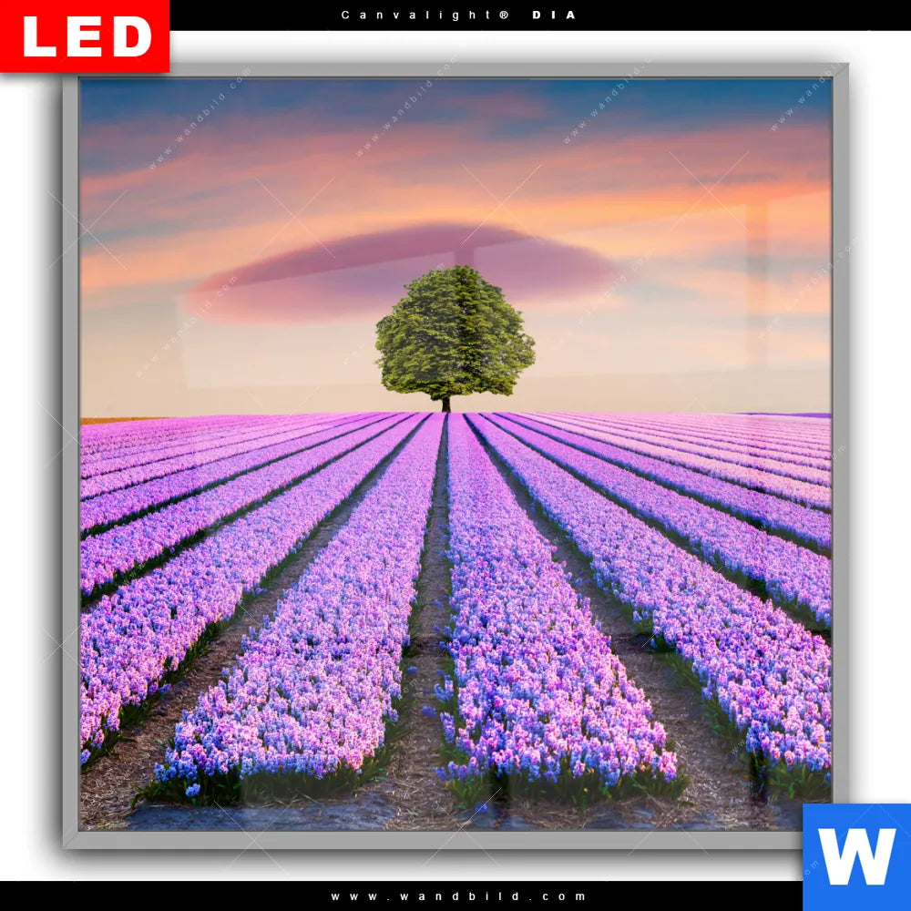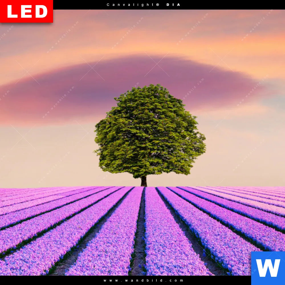 Canvalight® DIA Leuchtbild | Baum im Blumenfeld | Quadrat