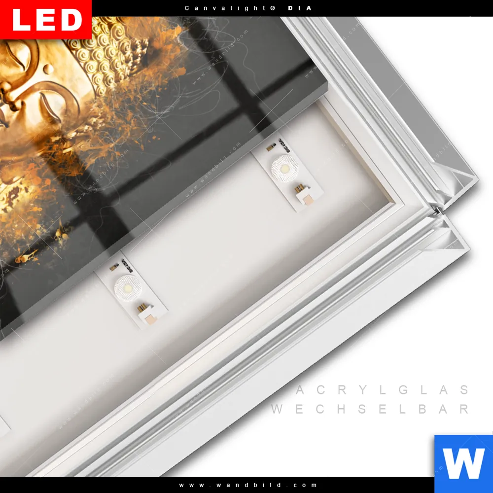 Canvalight® DIA Leuchtbild | Buddha Golden Splash | Hochformat