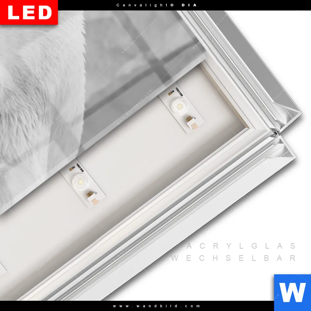 LED-Glasbild mit austauschbarem Acrylglas-Druck (Wechselbild)