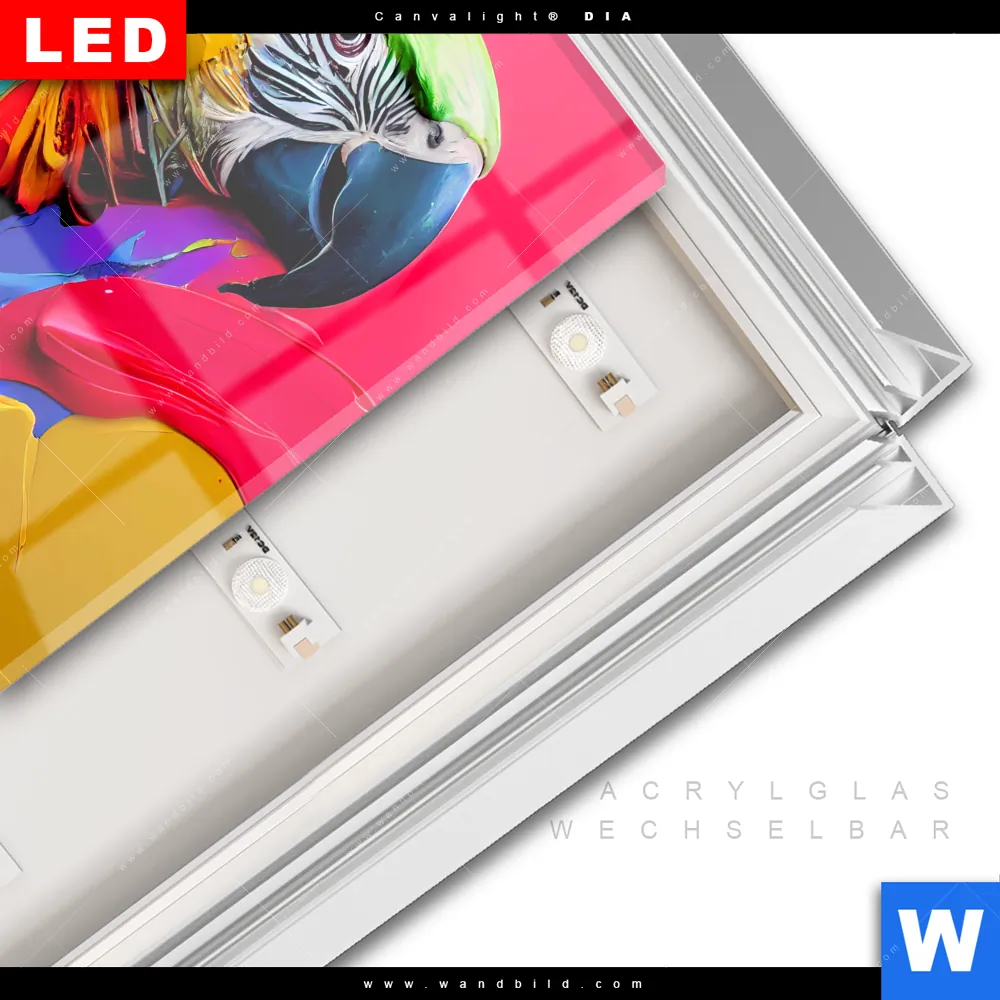 Canvalight® DIA Leuchtbild | Federn Papagei | Quadrat