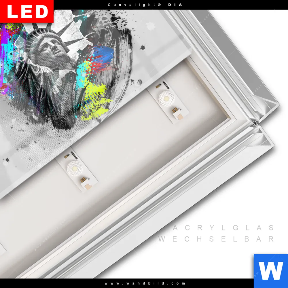 LED-Glasbild mit austauschbarem Acrylglas-Druck (Wechselbild)