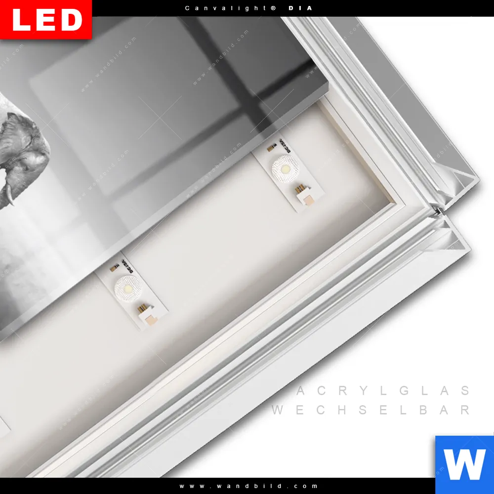 LED-Glasbild mit austauschbarem Acrylglas-Druck (Wechselbild)