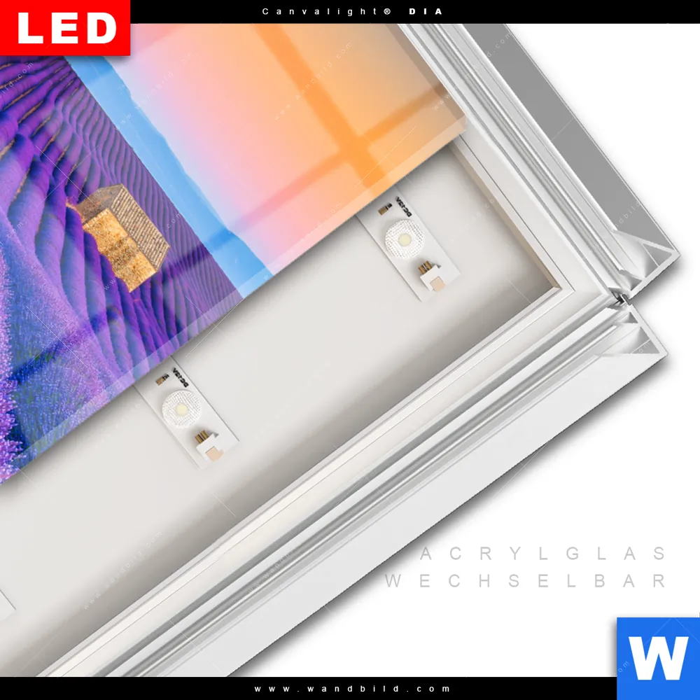 LED-Glasbild mit austauschbarem Acrylglas-Druck (Wechselbild)