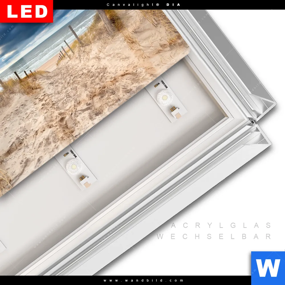 LED-Glasbild mit austauschbarem Acrylglas-Druck (Wechselbild)