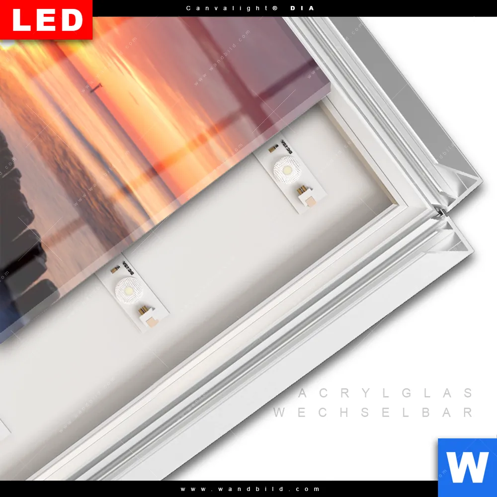 LED-Glasbild mit austauschbarem Acrylglas-Druck (Wechselbild)