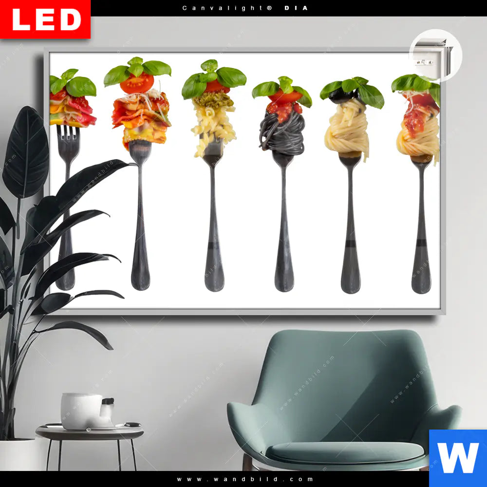 Canvalight® DIA Leuchtbild | Pasta auf Gabeln | Querformat