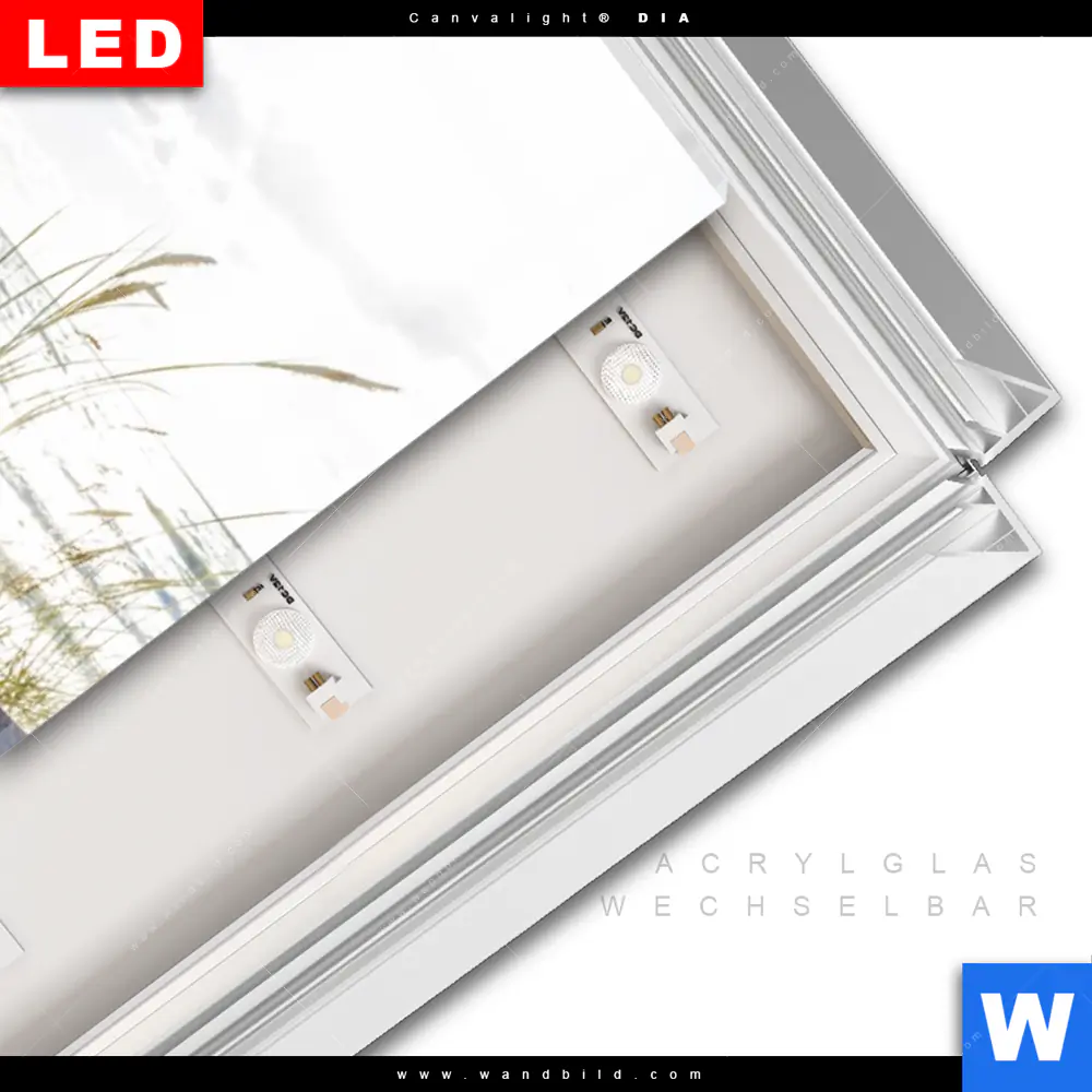 LED-Glasbild mit austauschbarem Acrylglas-Druck (Wechselbild)