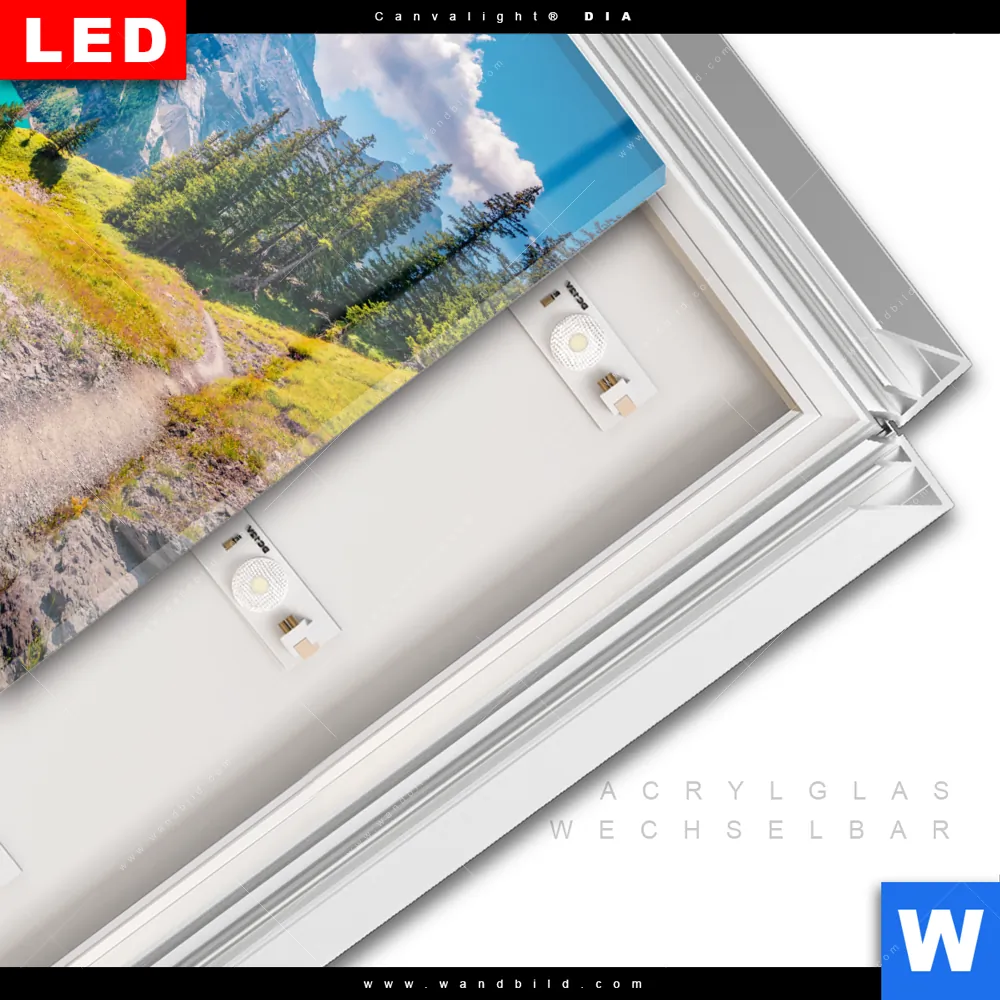LED-Glasbild mit austauschbarem Acrylglas-Druck (Wechselbild)