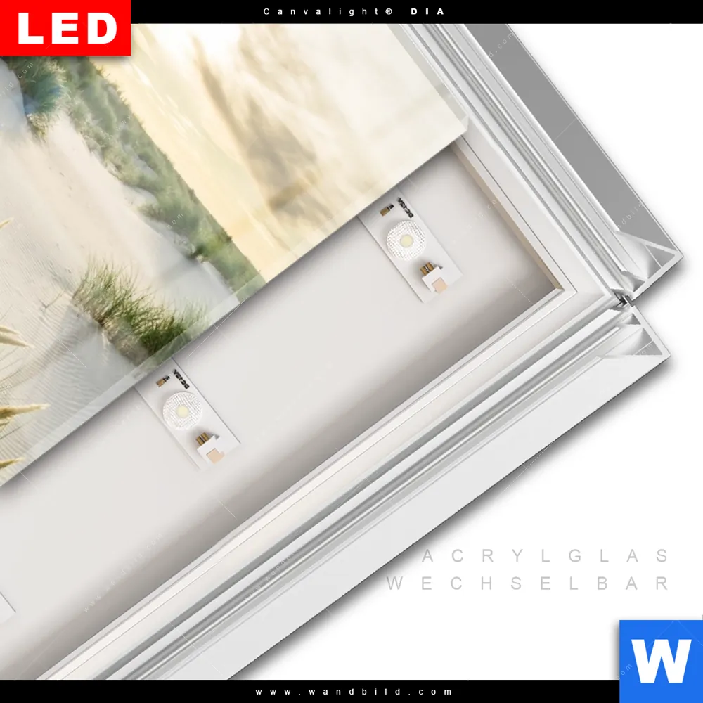LED-Glasbild mit austauschbarem Acrylglas-Druck (Wechselbild)