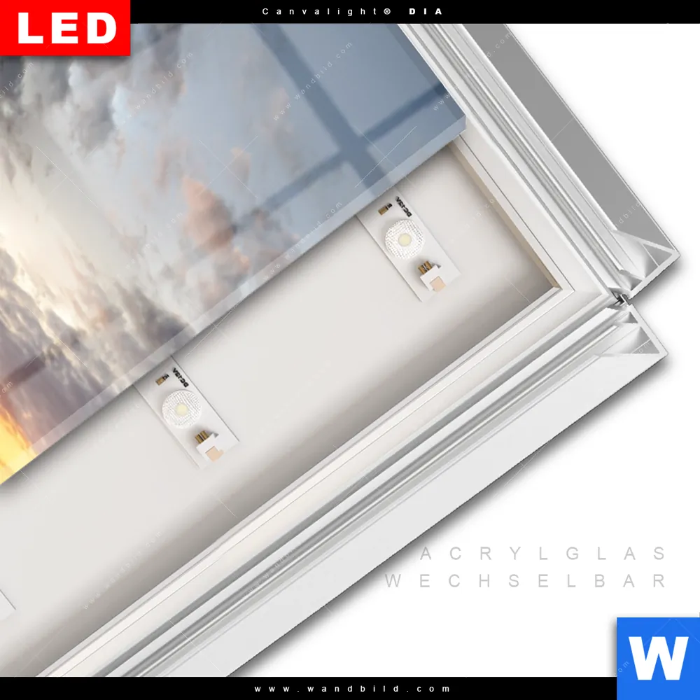 LED-Glasbild mit austauschbarem Acrylglas-Druck (Wechselbild)