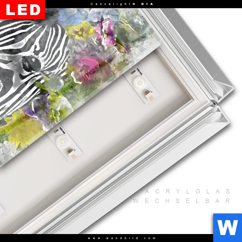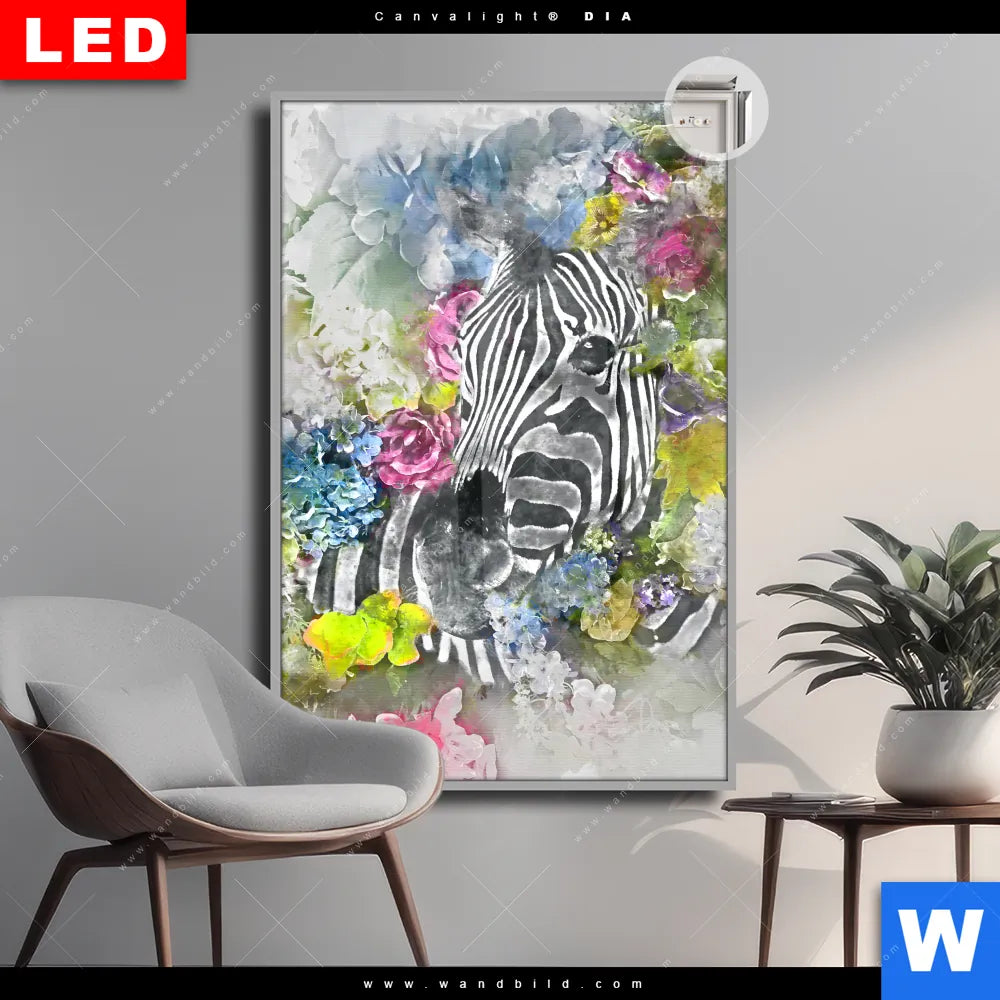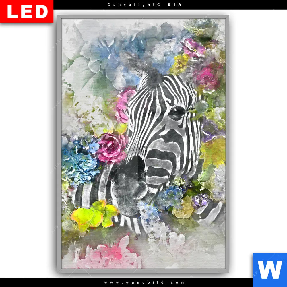 Canvalight® DIA Leuchtbild | Zebra & Blumen | Hochformat